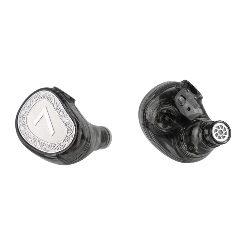 It features two custom dynamic drivers—10 mm and 8 mm—with LCP composite diaphragms, flexible surrounds, N52 magnets, and Japanese large-diameter voice coils for low distortion, high resolution, and an expansive frequency range.