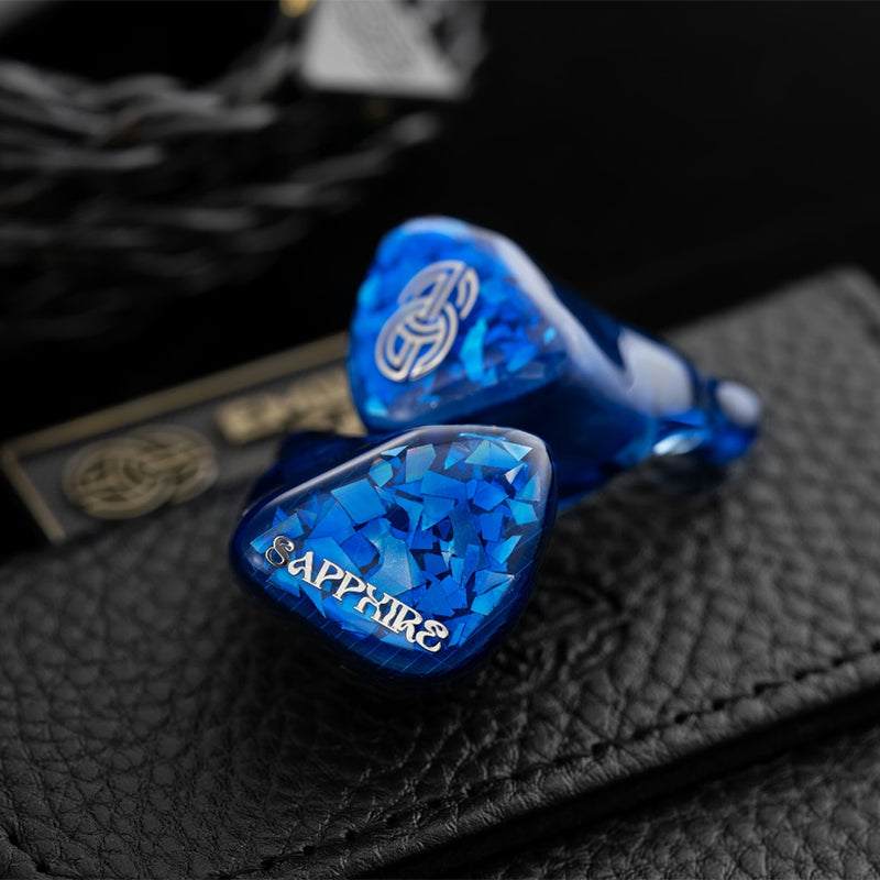 The SAPPHIRE IEM takes its inspiration from the symbolic properties of sapphires — representing wisdom, honesty, and loyalty. The soothing blue faceplate of SAPPHIRE represents purity, rationality, and elegance. This refined design is paired with a body made from medical-grade resin, complemented by rhinestones, creating an ethereal visual effect. The internal drivers are suspended, sparkling within this "sea of stars," reflecting the community-driven evolution of the product. SAPPHIRE embodies the balance between innovative design and technical excellence, representing Eminent Ears' growth and the collaboration between the brand and its dedicated supporters.