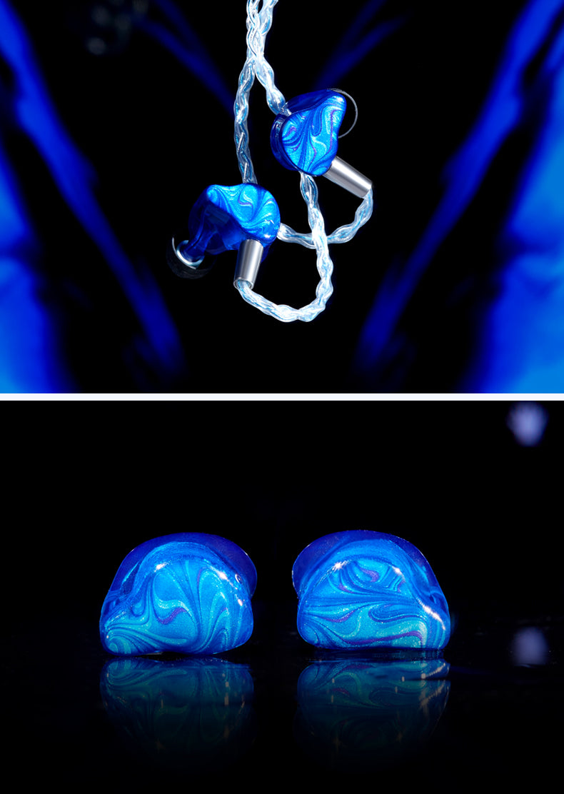 Following the Spring, the Four Seasons family embraces a new member, Summer. Inspired by the sound of nature and the four seasons, Reecho and Peacock jointly created this marvelous HiFi in ear monitor which blows the market with its gorgeous chinoiserie handmade cavity and outstanding performance. Summer is created based on the summer blue sea and the wind, the color scheme is blue embedded with shimmering elements. It’s like the glowing sand and sea under the sun