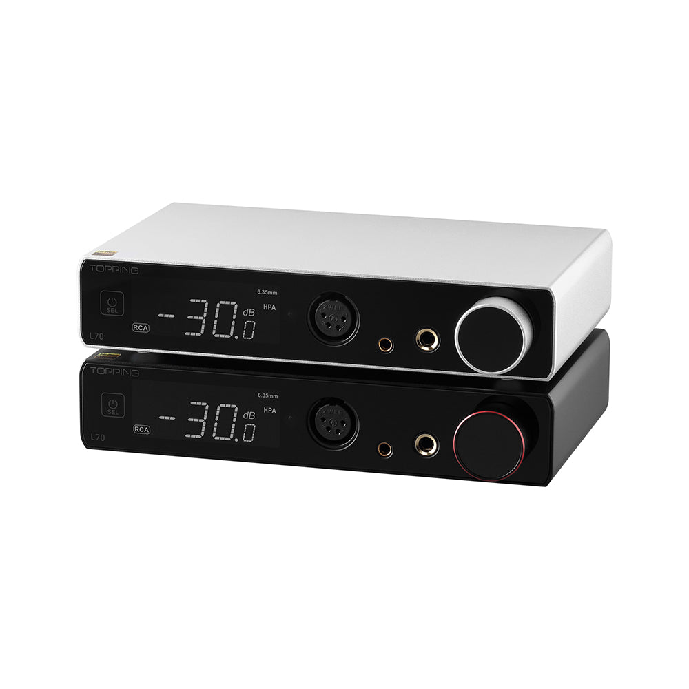 Adopting the same NFCA module with A90, TOPPING L70 utilizes a voltage current hybrid feedback architecture along with UHGF(Ultra High Gain Feedback) technology to provide excellent DC and AC performance,ultra-low THD+N and absurdly high dynamic range of 146dB. Even more, high output current drive capability, ultra-low output impedance and the ultra-low noise of 0.3uV which is miles ahead of the competition provide sufficient guarantee for driving headphones with various characteristics, so that high-fidelity music can be vividly performed on different headphones.