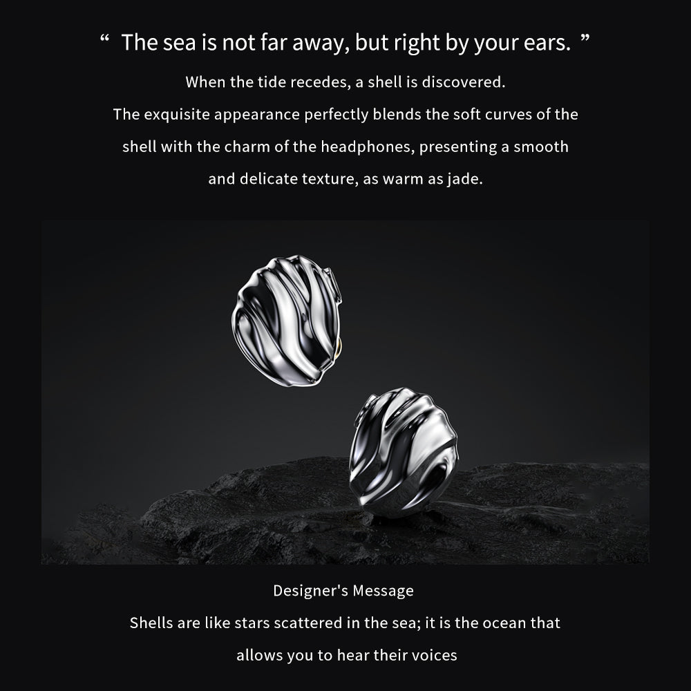 The SHELL’s durable and high-strength liquid metal body is electroplated for extra resilience. The streamlined design enhances its modern aesthetic, offering both durability and a refined artistic look. The metal body also contributes to a purer sound base for optimal audio performance.